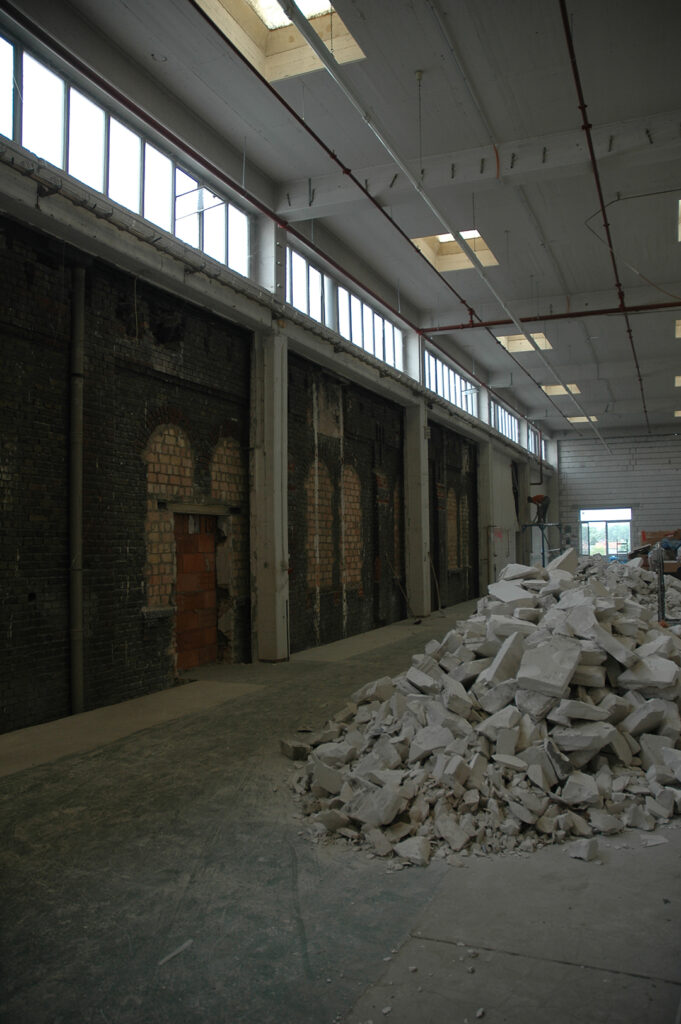 Kreativ-Wirtschaft, Gastronomie, Event – die Hallen der ehemaligen, ältesten Bettfedernfabriken Deutschlands am Mannheimer Industriehafen wurden seit 2006 saniert und haben sich zum Hotspot für viele Firmen entwickelt. Die historische Substanz mit ihrem massiven Backsteinmauerwerk und den gusseisernen Trägern prägt den Look des Gebäudes, aber eine Aufgabe blieb bisher offen: die Umgestaltung der 17 Meter hohen und 40 Meter langen dreigeschossigen Betonhalle, die als letztes Element im Originalzustand der 60er Jahre verblieben ist.
